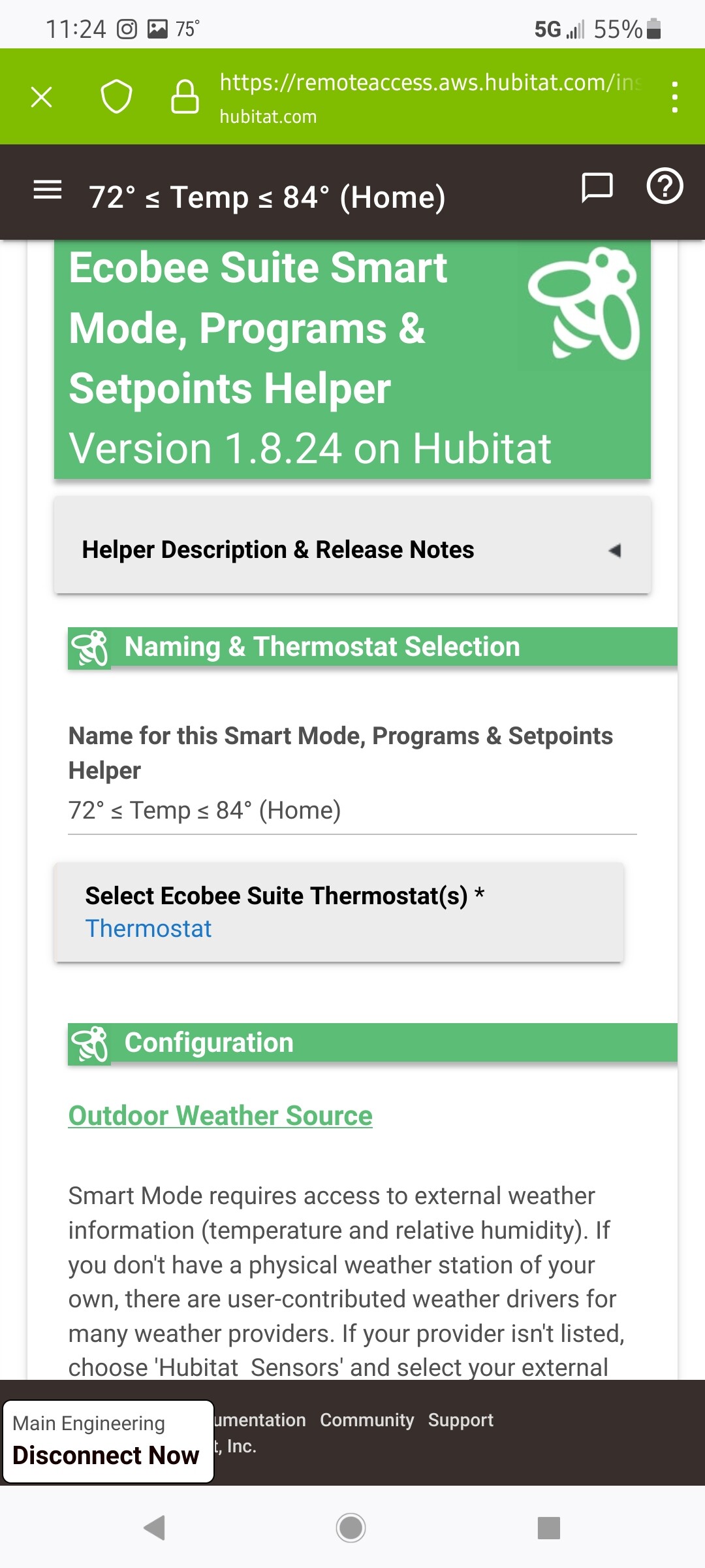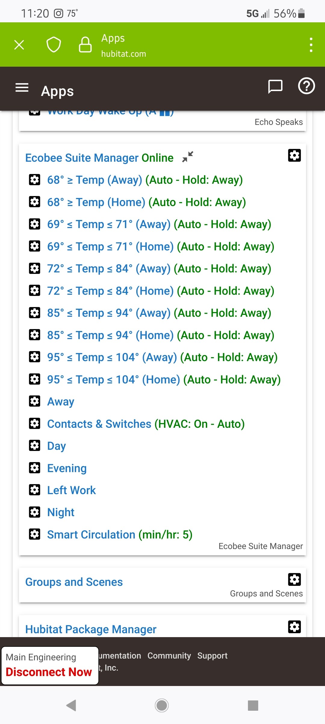 So currently the program sets the ecobee status to match hubitat away/home/sleep times which it did flawlessly and it's what you see reflected there. However the set points need to charge with the outside temperature ranges