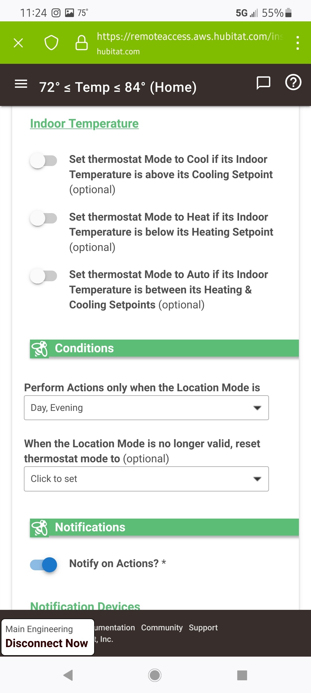 Note that these are only going to change setpoints if they aren’t already the desired setpoints, so you won’t see a change every time the temperature changes within the 72-84 range.