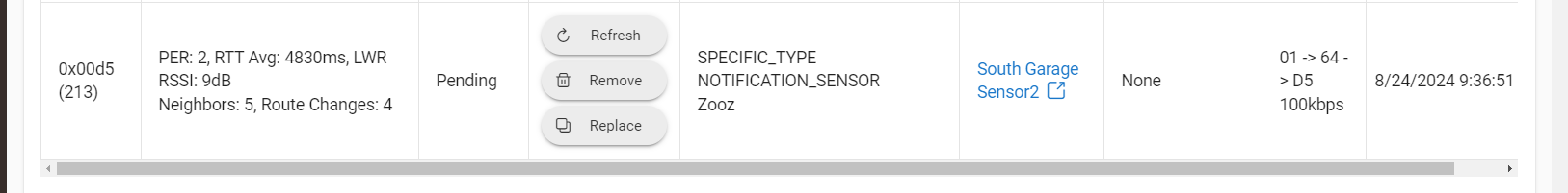 So I brought it back in this morning and stuck out in my garage as I had been wanting to add another motion sensor out there anyway. On the Z-wave status page it shows the device status as pending. I have refreshed it many times. How long should it take for this to update?