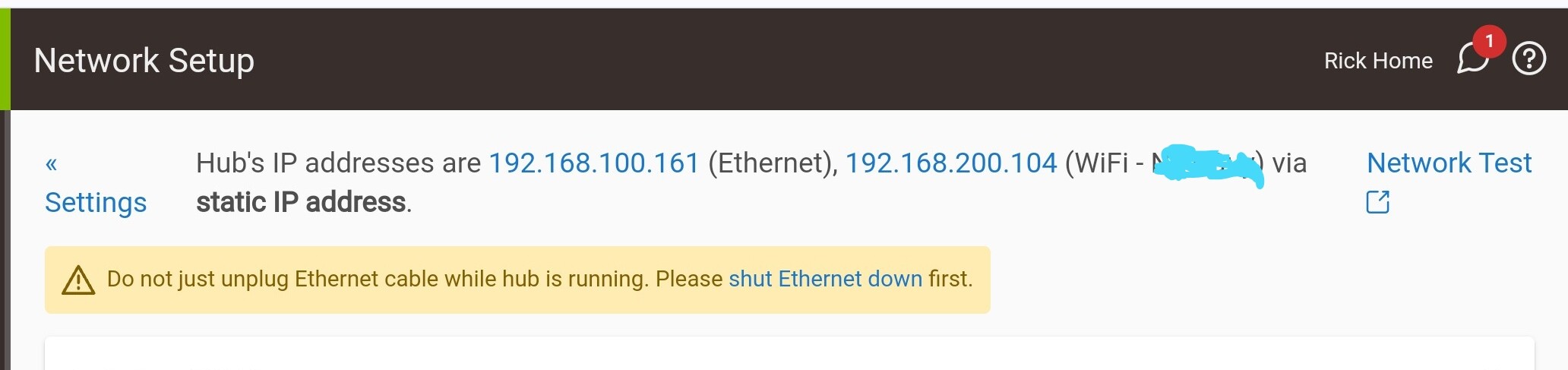 No, the WiFi doesn't have an IP, because it's not connected. It's only connected to ethernet, but I can connect to the MyNewHubitat SSID, hit 172.16.1.1, and log into the hub. I do not want that, because it's an extra network taking up airtime, and because it's an open SSID that's dual-homed to my non-open network. I want my hub to be wired-ethernet-only, and several posts say that once it's connected to ethernet it will turn its WiFi radio off, but that doesn't appear to be the case.