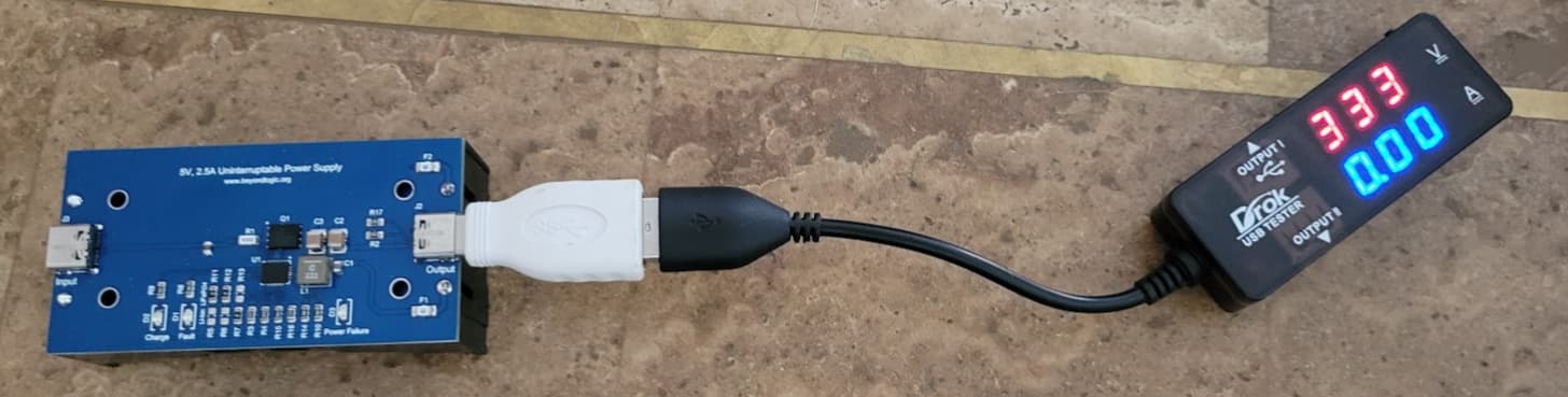 I found a few of my old travel chargers that light up the Charge LED when connected to the UPS. I'm using this to charge both of them right now - that seem reasonable? I'm using the two Quick Charge ports on it, as they had the highest output readings.