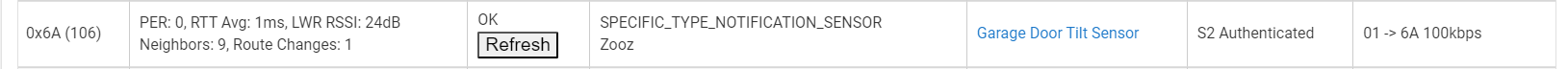 My sensor is 2 hops from the hub, I have a Z-Wave switch in the garage that the sensor is connecting to. The hub is actually about 150 ft from the garage door. I replaced an old Aeotec with the ZOOZ in November of 22. It is still using the same battery, and the battery shows "38" in Hubitat.