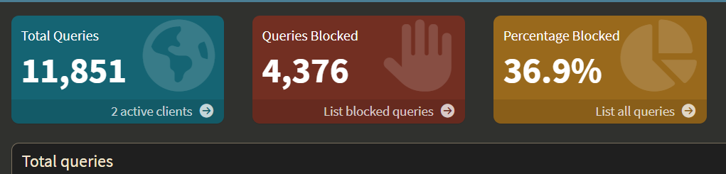 I'm happy, I think, except the wife just turned on the Google Chromecast TV and the apps were all missing. I turned off the Pi-Hole and restarted the Chromecast and life, rhymes with wife, is good again.