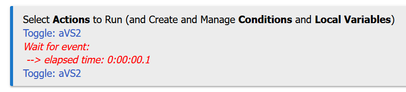 I'm not suggesting a delay as I don't think you can force a delay between events. I'm just showing that a longer time between events worked where quicker didn't.