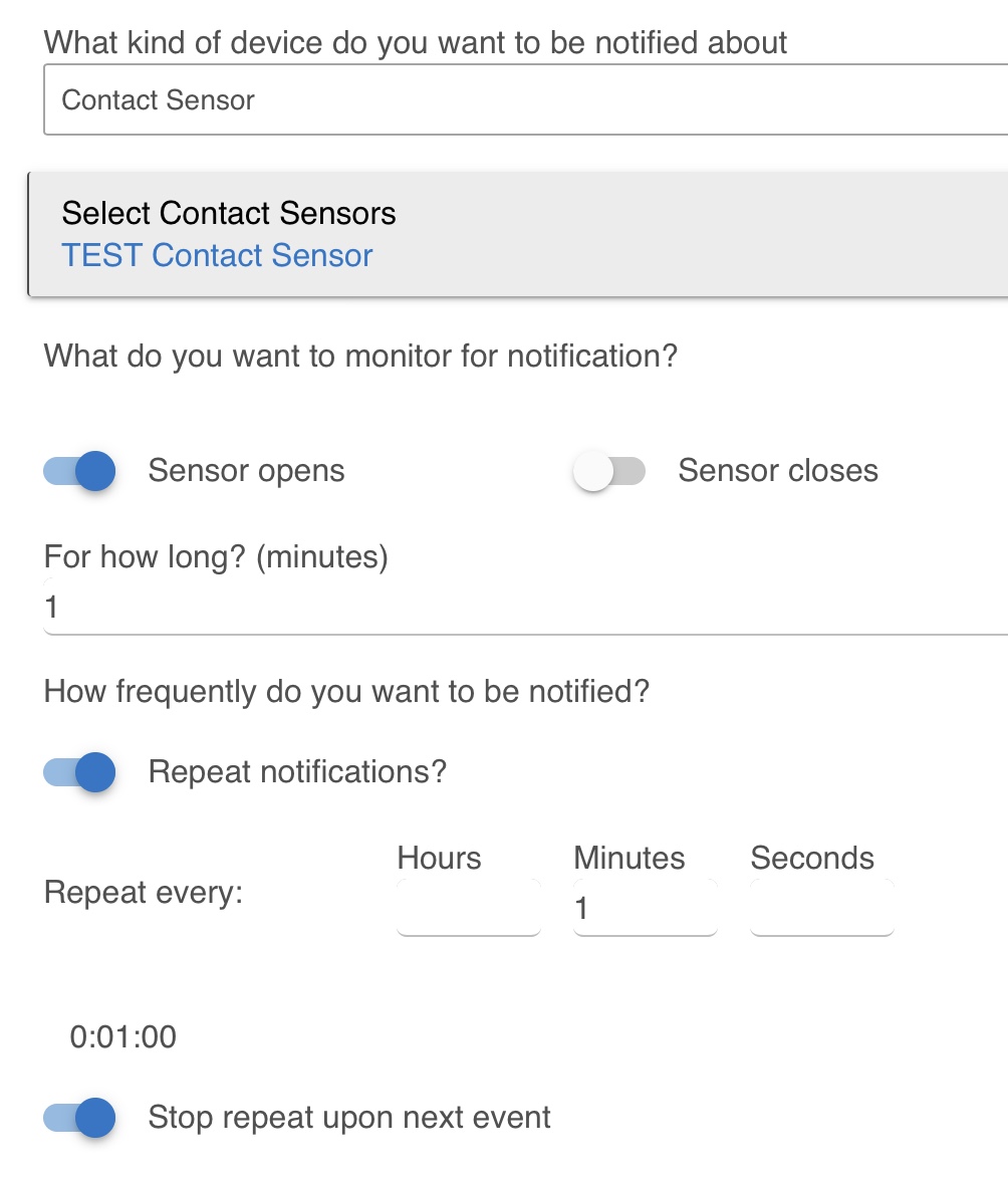 That being said, is there a reason you want to use Rule Machine for this? Learning RM is fine, but the built-in Notifications app can handle this scenario with less work...something like: