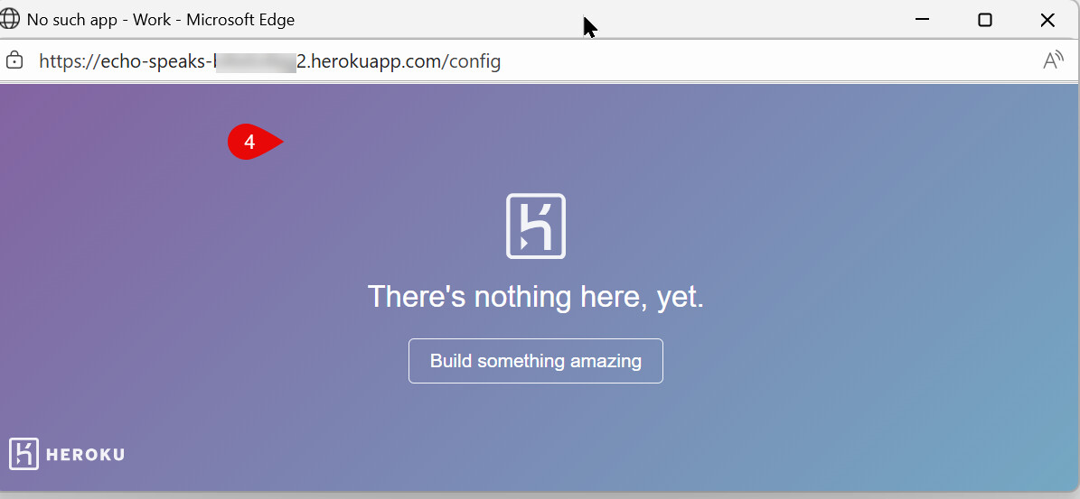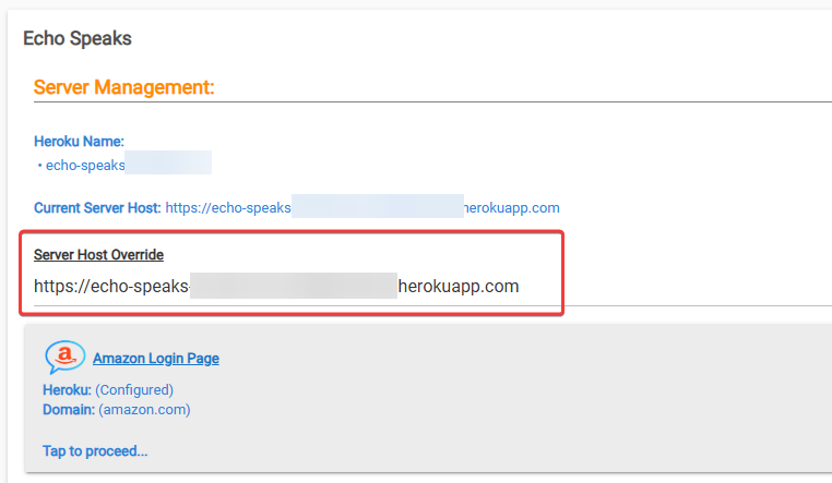 as I am attempting to do this from Echo Speaks in Hubitat. As noted the window that pops up in Echo Speaks does not have URL that I updated in the HostURL var within Config Vars in Heroku.