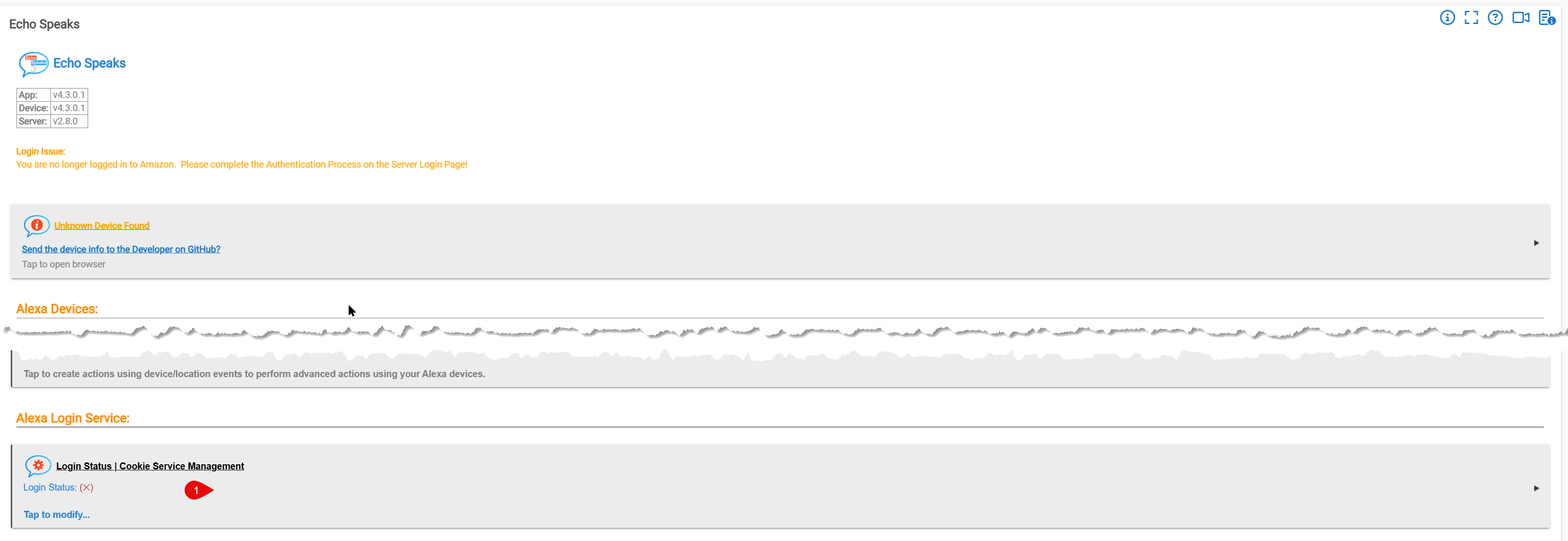 Hello. I am havng the same symtoms you describe with the latest Echo Speaks package (4.3.0.1). I am able to to logon to Amazom and set my cookie successfully via the Heroku Host URL you have suggested needs modifying. I am unable to find the 'Server Host Override' URL within the app settings on Hubitat. As a result I am seeing the purple screen shown. My Hubitat logs tell me that I need to re-authenticate. Any suggestions would be appreciated.