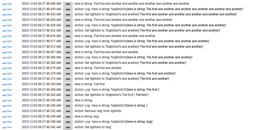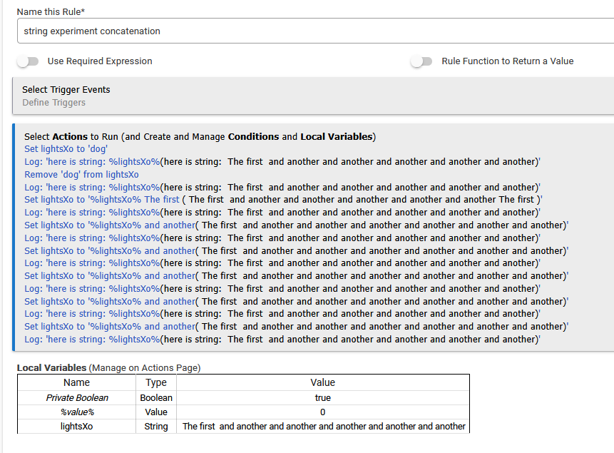 Go easy on me on this one...... I am using a string variable to keep track of outcomes in a rule with multiple Ifs.