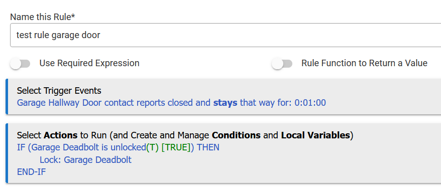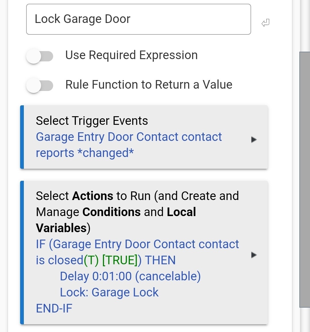 If Garage Lock report unlocked and entry door is closed, then wait 1 min a lock garage lock. (this semes easy but the garage lock reports unlocked before we can open door so it thinks the entry door is closed)