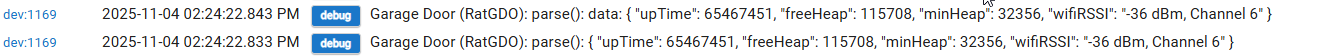 parse(): { "upTime": 24915162, "freeHeap": 116376, "minHeap": 45084, "wifiRSSI": "-39 dBm, Channel 6" }
