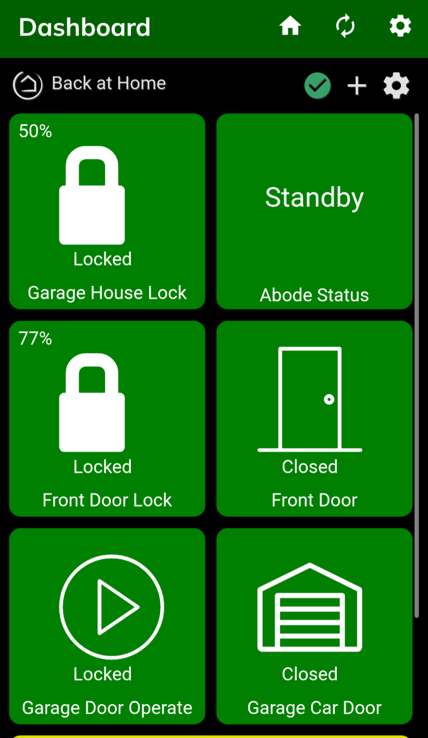 Try it with the regular dash board. Locks confirm yes or no. Control your garage door with a virtual lock without codes device then the dash board tile for it will ask yes or no too.