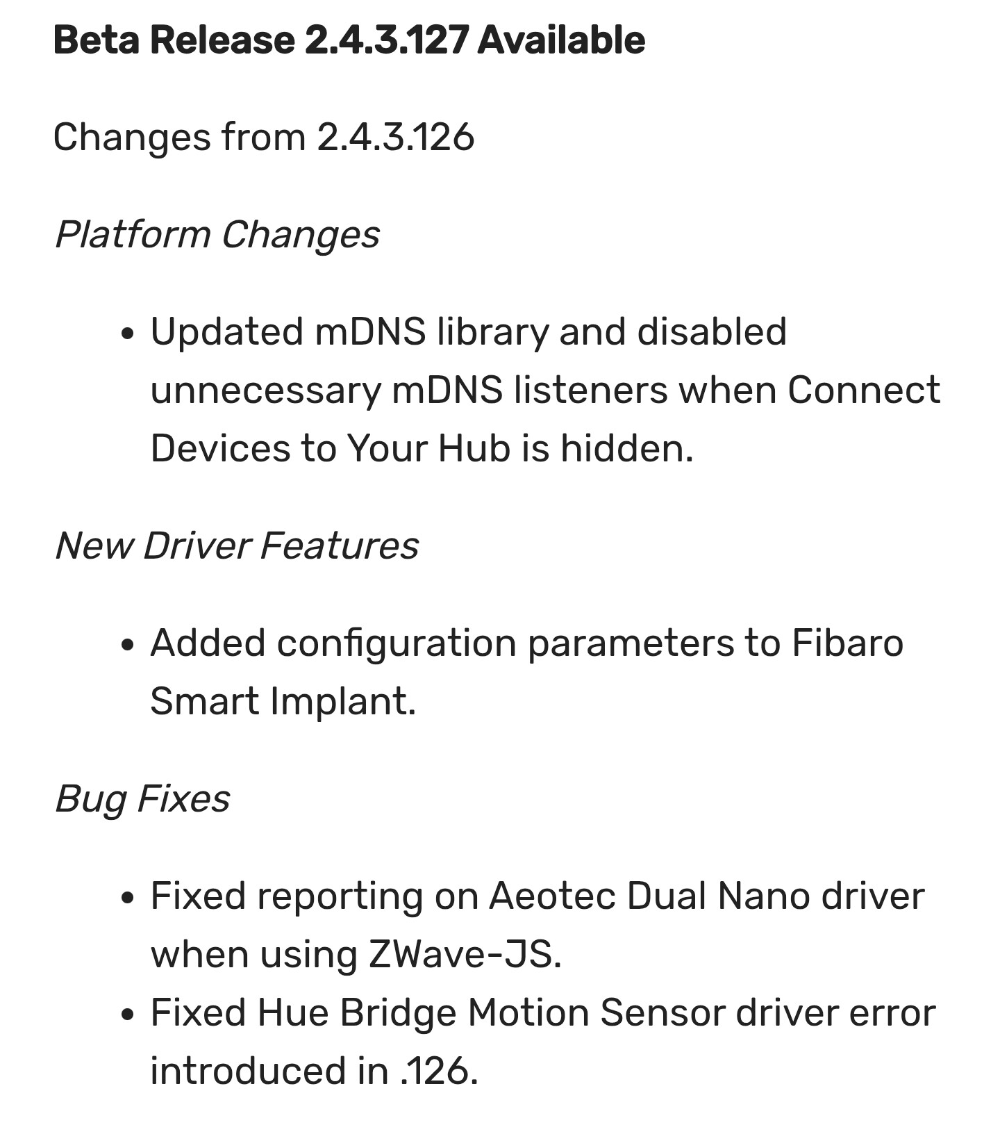 However Im still having issues with the Smart Implants in 2.4.3.127 + ZWJS. Basically, I'm not seeing the inputs update, and I cant trigger the relays. I'll do some more testing with my spare unit and confirm it isnt just an issue with my garage door unit.