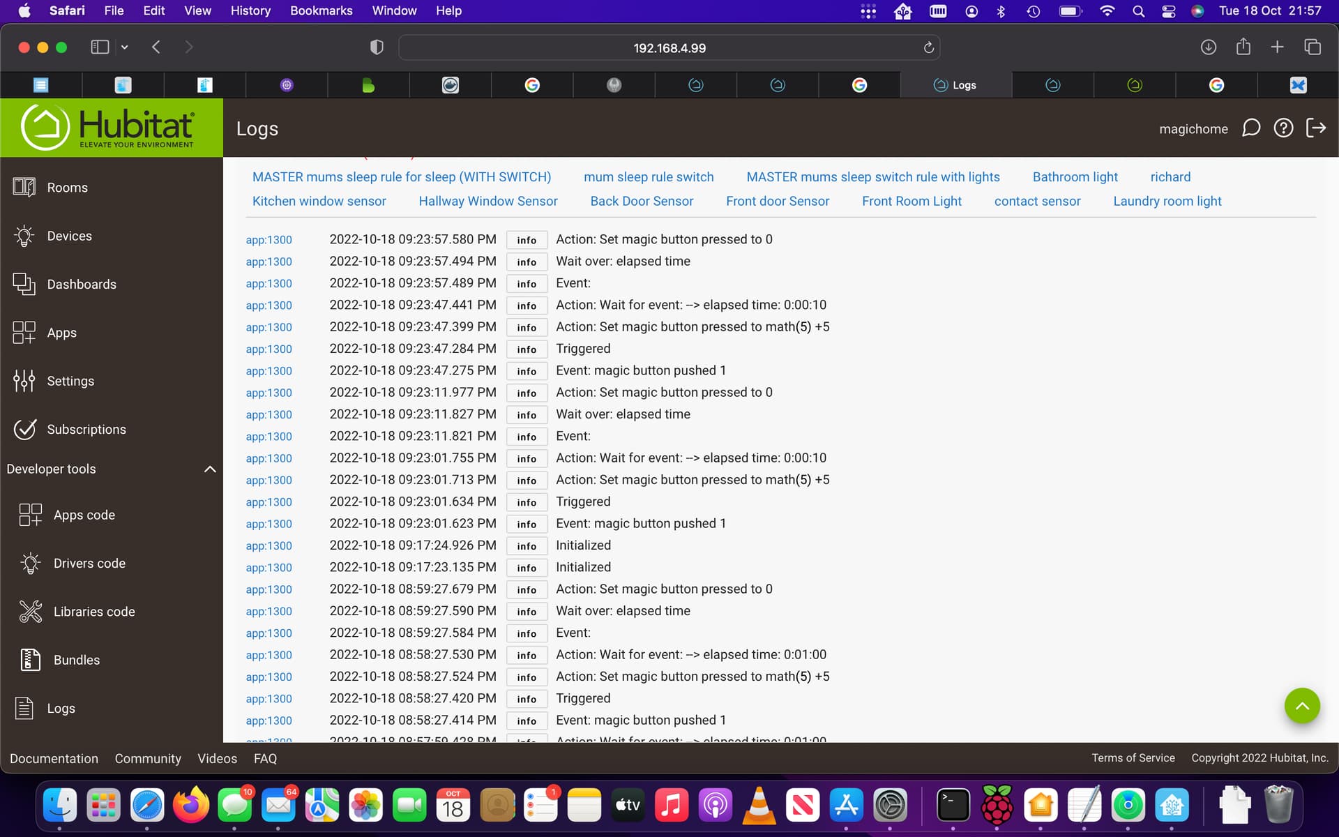 not getting any logs from the magic button rule, I think I may have corrupted the system again? Is it time to backup and soft reset again lol?