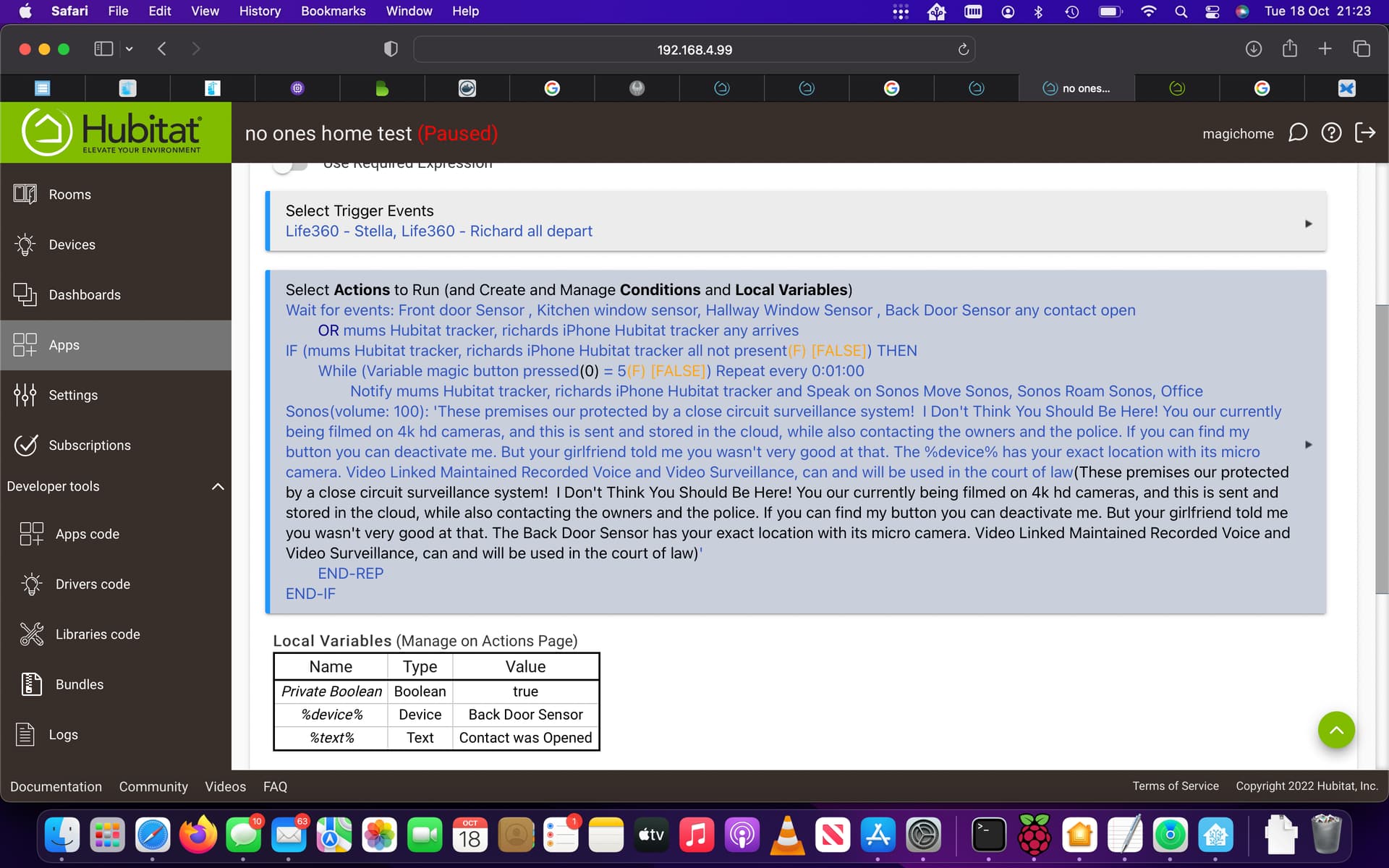 the alarm notifications didn't stop on return either? I am using life 360 with stats there may be a bug with that as I had 2 homes on there at one time so I can change it to the Hubitat tracker as that's definitely working correctly. Hopefully that will sort out the main rule, I can re build this tonight.