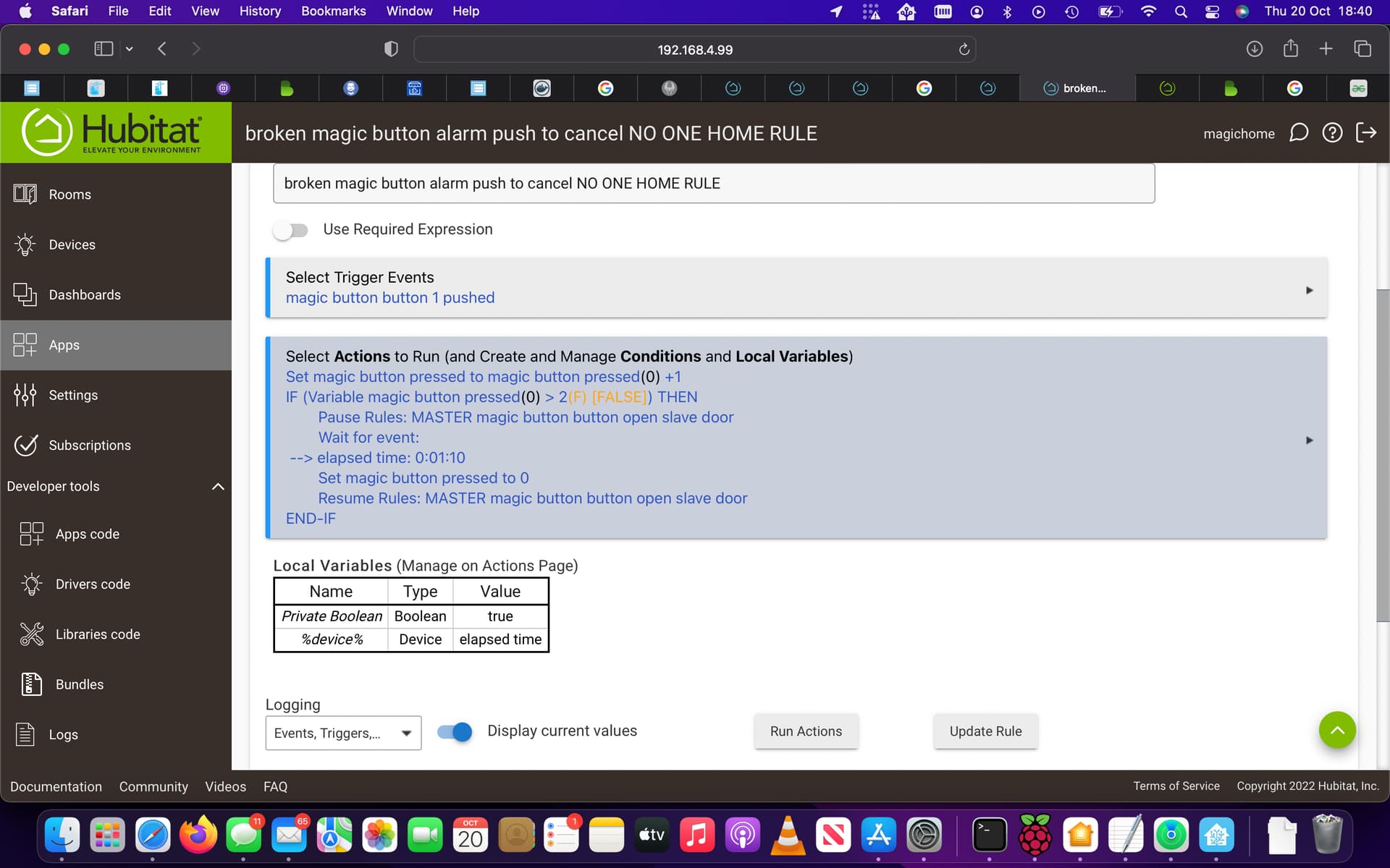 this a rule I made to open and close the door, I think it was a rule you may have helped me make I just added a button to open and close it on a single press