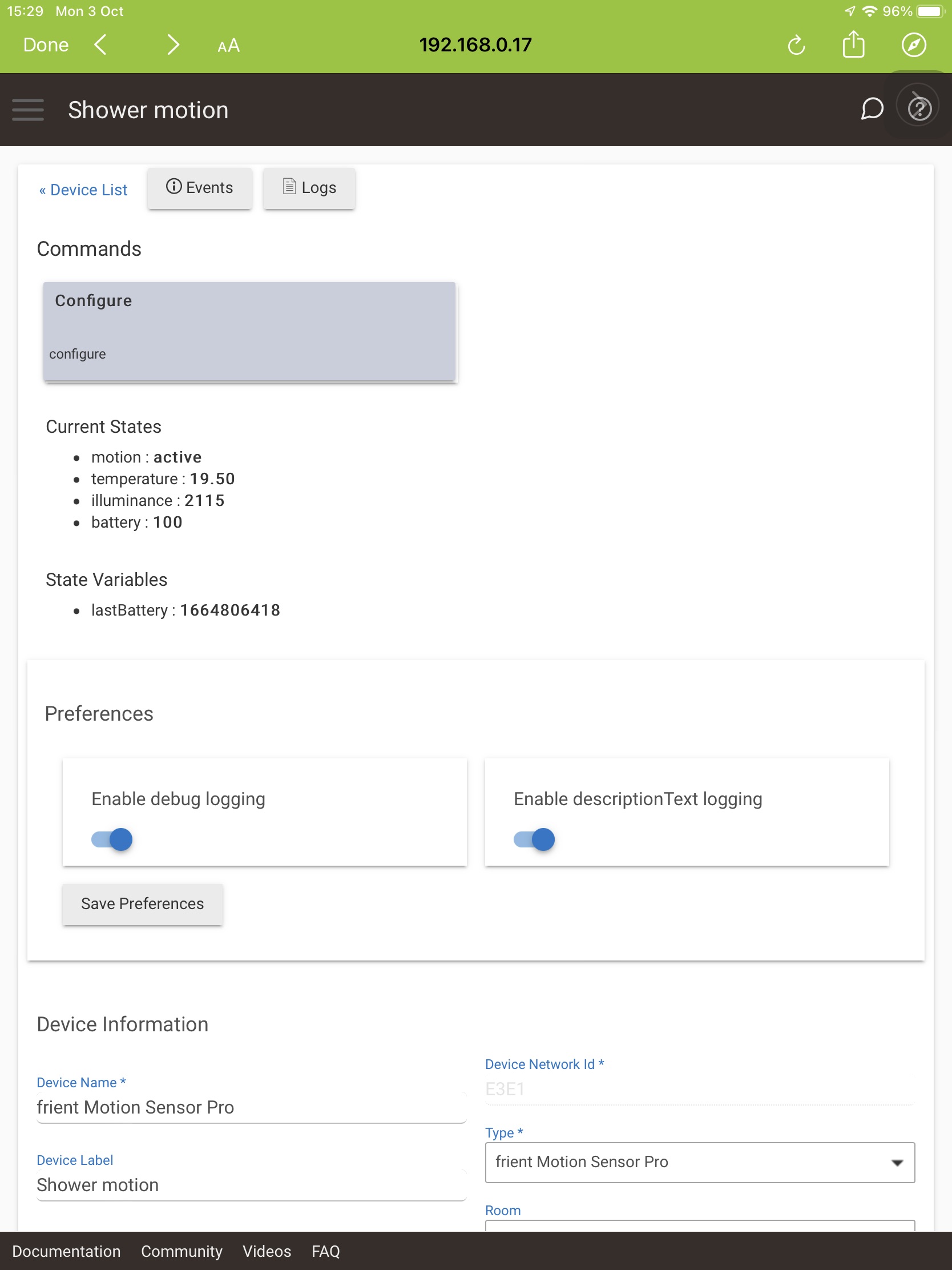 The Philips Motion sensors are pretty widely used here. I have a couple, they work well with Hubitat. Same set of current states shown by @rlithgow1 ....