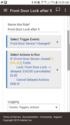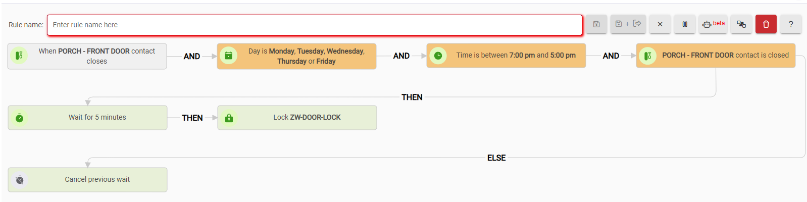 A long while back when I built my rules in January of 2020, things on HE were a little different! Not complaining. It's great all the improvements. However one of my rules for my front door has since stopped working, and I cannot for the life of me duplicate how I had it set up. Here is the Goal.