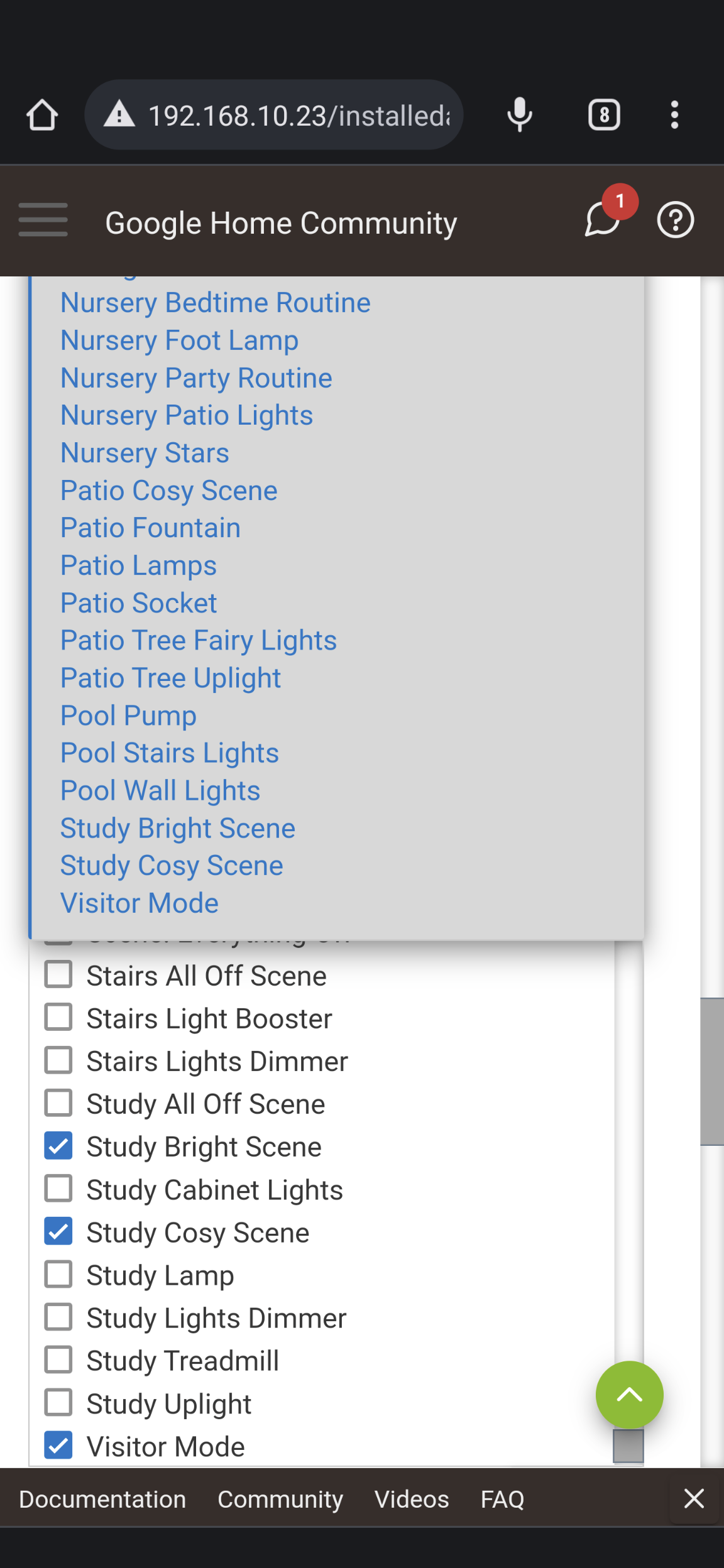 app:6292022-12-07 19:58:23.832debug{"requestId":"1284831523175188200","payload":{"agentUserId":"a91d2a3b-51de-4932-a385-c7e286eb45dc_629","devices":[{"id":"642","type":"action.devices.types.SWITCH","traits":["action.devices.traits.OnOff"],"name":{"defaultNames":["Nursery Party Routine"],"name":"Nursery Party Routine"},"willReportState":false,"attributes":{},"roomHint":null},{"id":"524","type":"action.devices.types.SWITCH","traits":["action.devices.traits.OnOff"],"name":{"defaultNames":["Generic Z-Wave Smart Switch"],"name":"Patio Socket"},"willReportState":false,"attributes":{},"roomHint":null},{"id":"13","type":"action.devices.types.SWITCH","traits":["action.devices.traits.OnOff"],"name":{"defaultNames":["Sonoff Wifi Switch"],"name":"Nursery Stars"},"willReportState":false,"attributes":{},"roomHint":null},{"id":"14","type":"action.devices.types.SWITCH","traits":["action.devices.traits.OnOff"],"name":{"defaultNames":["Sonoff Wifi Switch"],"name":"Garden Security Light"},"willReportState":false,"attributes":{},"roomHint":null},{"id":"16","type":"action.devices.types.SWITCH","traits":["action.devices.traits.OnOff"],"name":{"defaultNames":["Sonoff Wifi Switch"],"name":"Balcony Lights"},"willReportState":false,"attributes":{},"roomHint":null},{"id":"19","type":"action.devices.types.SWITCH","traits":["action.devices.traits.OnOff"],"name":{"defaultNames":["Bedroom Straighteners"],"name":"Bedroom Straighteners"},"willReportState":false,"attributes":{},"roomHint":null},{"id":"22","type":"action.devices.types.SWITCH","traits":["action.devices.traits.OnOff"],"name":{"defaultNames":["Sonoff Wifi Switch"],"name":"Bathroom Extractor Fan"},"willReportState":false,"attributes":{},"roomHint":null},{"id":"1558","type":"action.devices.types.SWITCH","traits":["action.devices.traits.OnOff"],"name":{"defaultNames":["Peanut Plug"],"name":"Family Room Decks"},"willReportState":false,"attributes":{},"roomHint":null},{"id":"1559","type":"action.devices.types.SWITCH","traits":["action.devices.traits.OnOff"],"name":{"defaultNames":["Peanut Plug"],"name":"Nursery Foot Lamp"},"willReportState":false,"attributes":{},"roomHint":null},{"id":"1560","type":"action.devices.types.SWITCH","traits":["action.devices.traits.OnOff"],"name":{"defaultNames":["Peanut Plug"],"name":"Bedroom Under Bed Light"},"willReportState":false,"attributes":{},"roomHint":null},{"id":"25","type":"action.devices.types.SWITCH","traits":["action.devices.traits.OnOff"],"name":{"defaultNames":["Pool Wall Lights"],"name":"Pool Wall Lights"},"willReportState":false,"attributes":{},"roomHint":null},{"id":"1561","type":"action.devices.types.SWITCH","traits":["action.devices.traits.OnOff"],"name":{"defaultNames":["Peanut Plug"],"name":"Guest Room Bedside Lamp"},"willReportState":false,"attributes":{},"roomHint":null},{"id":"26","type":"action.devices.types.SWITCH","traits":["action.devices.traits.OnOff"],"name":{"defaultNames":["Sonoff Wifi Switch"],"name":"Garden Path Lights"},"willReportState":false,"attributes":{},"roomHint":null},{"id":"1562","type":"action.devices.types.SWITCH","traits":["action.devices.traits.OnOff"],"name":{"defaultNames":["Peanut Plug"],"name":"Lounge Fish Tank"},"willReportState":false,"attributes":{},"roomHint":null},{"id":"1563","type":"action.devices.types.SWITCH","traits":["action.devices.traits.OnOff"],"name":{"defaultNames":["Ikea TRADFRI Control Outlet"],"name":"Patio Lamps"},"willReportState":false,"attributes":{},"roomHint":null},{"id":"1564","type":"action.devices.types.SWITCH","traits":["action.devices.traits.OnOff"],"name":{"defaultNames":["Ikea TRADFRI Control Outlet"],"name":"Entrance Christmas Lights"},"willReportState":false,"attributes":{},"roomHint":null},{"id":"1565","type":"action.devices.types.SWITCH","traits":["action.devices.traits.OnOff"],"name":{"defaultNames":["Ikea TRADFRI Control Outlet"],"name":"Lounge Air Freshener"},"willReportState":false,"attributes":{},"roomHint":null},{"id":"1566","type":"action.devices.types.SWITCH","traits":["action.devices.traits.OnOff"],"name":{"defaultNames":["Ikea TRADFRI Control Outlet"],"name":"Garden Bar Fridge"},"willReportState":false,"attributes":{},"roomHint":null},{"id":"799","type":"action.devices.types.SWITCH","traits":["action.devices.traits.OnOff"],"name":{"defaultNames":["Generic Z-Wave Smart Switch"],"name":"Entrance Air Freshner"},"willReportState":false,"attributes":{},"roomHint":null},{"id":"1447","type":"action.devices.types.SWITCH","traits":["action.devices.traits.OnOff"],"name":{"defaultNames":["Family Room Media Cabinet Glass Down Switch"],"name":"Family Room Media Cabinet Glass Down Switch"},"willReportState":false,"attributes":{},"roomHint":null},{"id":"552","type":"action.devices.types.SWITCH","traits":["action.devices.traits.OnOff"],"name":{"defaultNames":["Inovelli Z-Wave Smart Switch S2"],"name":"Nursery Patio Lights"},"willReportState":false,"attributes":{},"roomHint":null},{"id":"812","type":"action.devices.types.SWITCH","traits":["action.devices.traits.OnOff"],"name":{"defaultNames":["Garage Door Notification"],"name":"Garage Door Notification"},"willReportState":false,"attributes":{},"roomHint":null},{"id":"438","type":"action.devices.types.SWITCH","traits":["action.devices.traits.OnOff"],"name":{"defaultNames":["Sonoff Wifi Switch"],"name":"Balcony Plants Irrigation"},"willReportState":false,"attributes":{},"roomHint":null},{"id":"439","type":"action.devices.types.SWITCH","traits":["action.devices.traits.OnOff"],"name":{"defaultNames":["Sonoff Wifi Switch"],"name":"Garden Pergola Fan"},"willReportState":false,"attributes":{},"roomHint":null},{"id":"567","type":"action.devices.types.SWITCH","traits":["action.devices.traits.OnOff"],"name":{"defaultNames":["Visitor Mode"],"name":"Visitor Mode"},"willReportState":false,"attributes":{},"roomHint":null},{"id":"313","type":"action.devices.types.SWITCH","traits":["action.devices.traits.OnOff"],"name":{"defaultNames":["Sonoff Wifi Switch"],"name":"Pool Pump"},"willReportState":false,"attributes":{},"