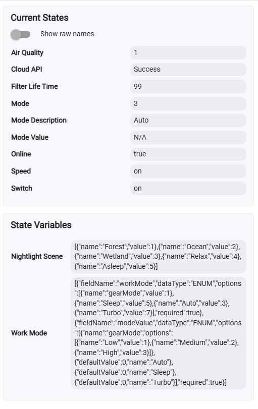 Life is a bit complicated at the moment. When i get some downtime i will work on a device specific driver. It looks like a few things are unique to that device. I need some time to refresh my memory of the driver code for air purifier devices. Once i get started it shouldn't take to long. I will post it to a beta driver first.