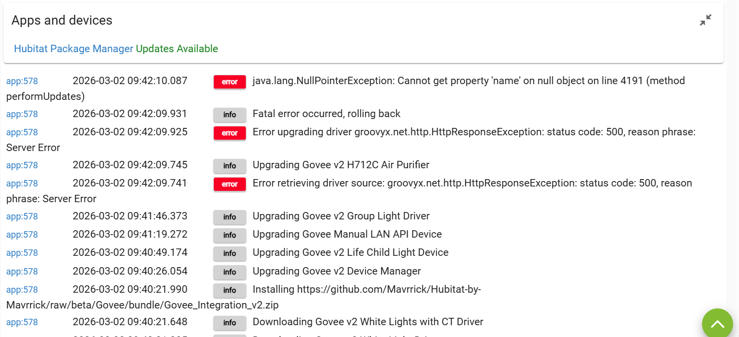 Network and connectivity are all fine... I even turned on debug logging in HPM but don't see anything more than yesterdays...
