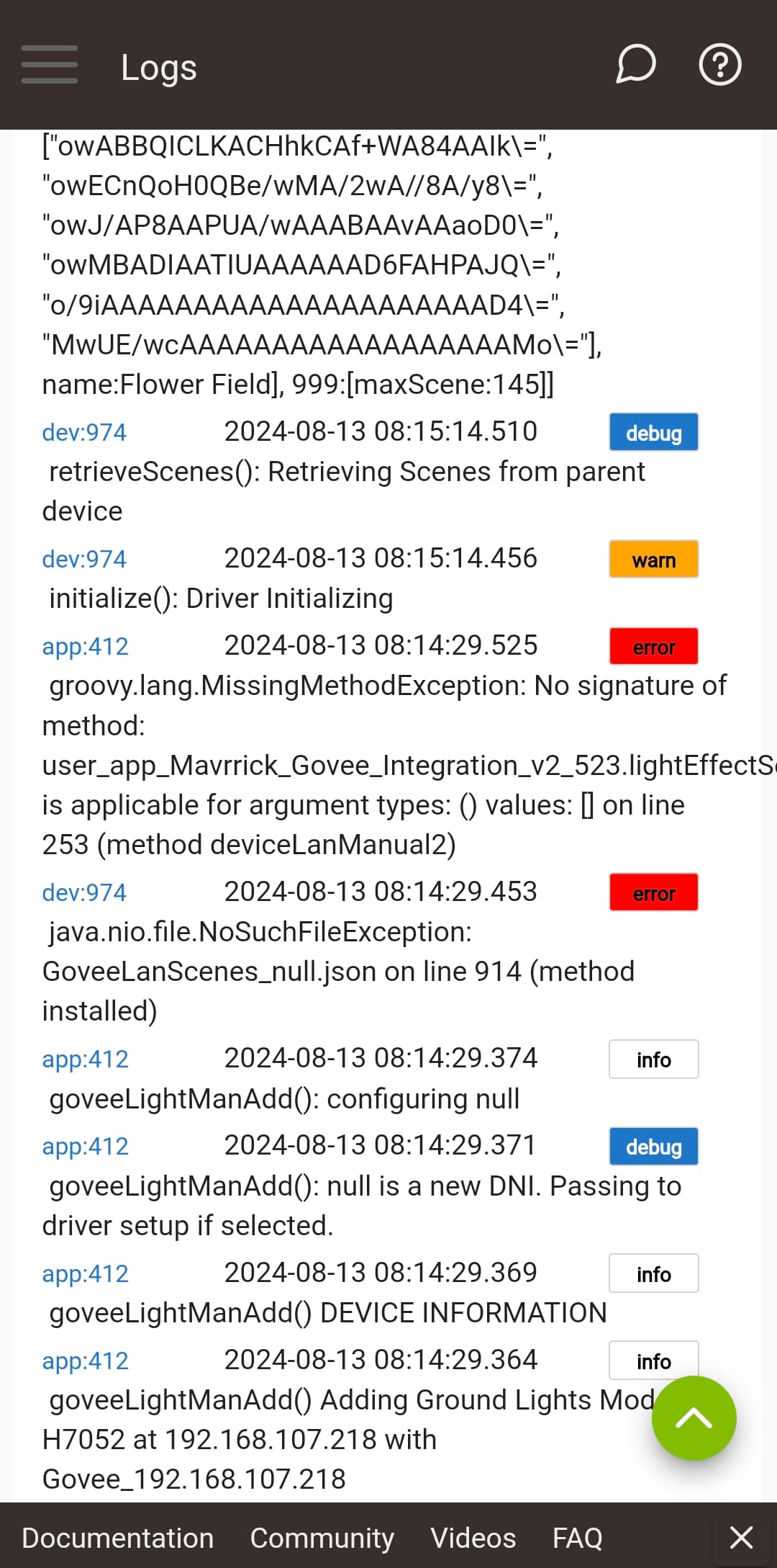 I will look into that error, but if the device created then it likely isn't a issue. This may be something i need to look at addressing as it was likely introduced with the recent rework of the Manual Lan Driver. I think this is related to scenes based on the errors, and that kind of makes sense as I believe the Lan Only devices use a different naming for the files they use. I am working on adding some info on this into my documentation for the Govee Integration app now.