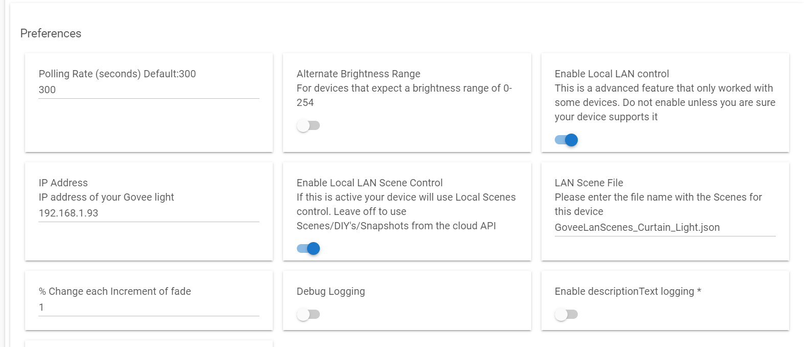 The Image actually says allot. It shows that driver defaulted to the Curtain light device. I suspect this is related to issues with some of the curtain light Scenes being very flacky to work right with LAN API. I would ask that you try turning off the option to "Enable Local LAN Scene Control" and then initialize the device to refresh the scenes associated. Then let me know if the problem persists with Cloud API. The Curtain lights is actually the reason I created that switch to allow Scenes control with the Cloud API while using LAN API is used for everything else..