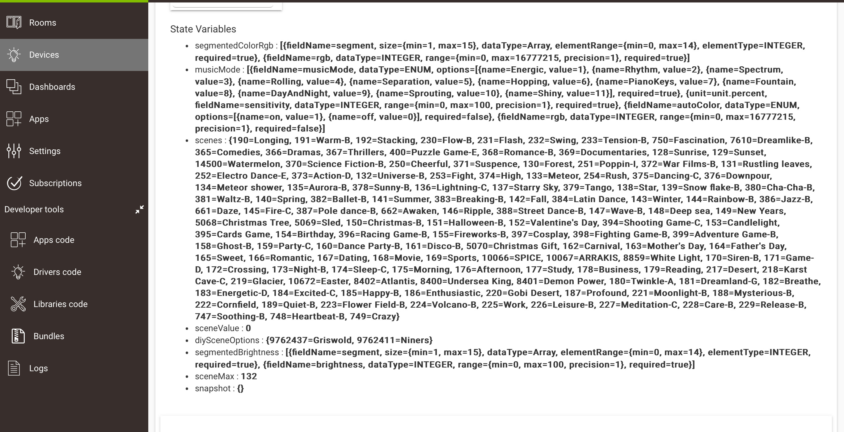 One other question, if I’m purely using the Cloud API, is there a reason why on one of my light strips I can’t see certain scenes? On my H70A1 light strip, I don’t see the “Halloween A” scene, but I do see the “Halloween B” scene in the device details. There’s also quite a few others missing in the device scenes although they’re available in the app.