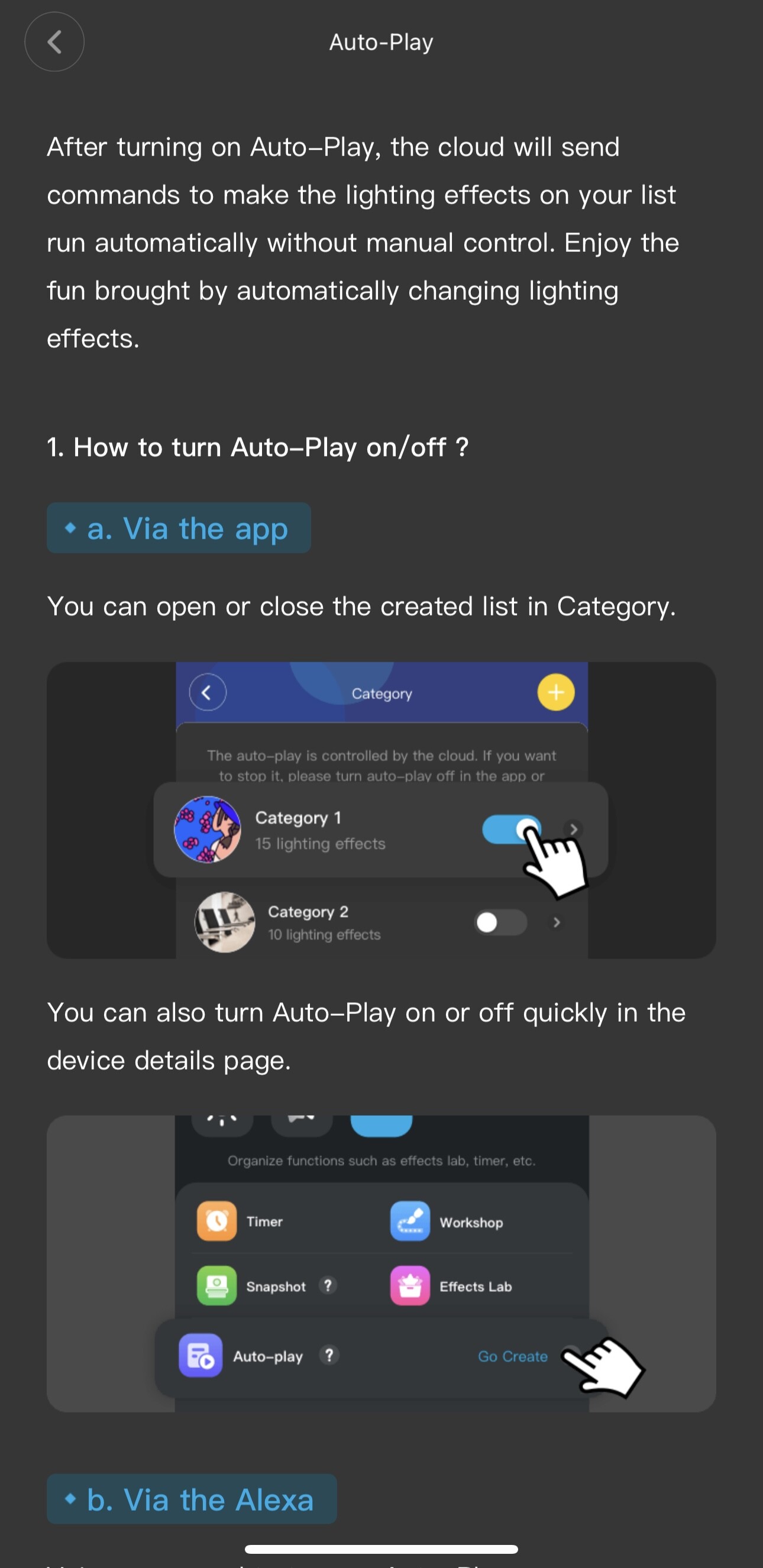 Auto Play is a setting that cycles through scenes. So for instance, on my curtain lights I have it set so that each scene plays for 5 mins and then cycles to another scene, etc. Here’s a screenshot and info from the app: