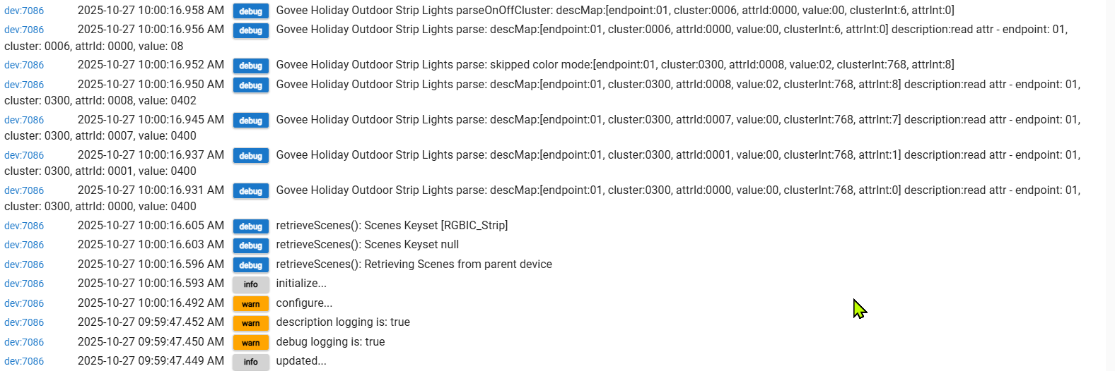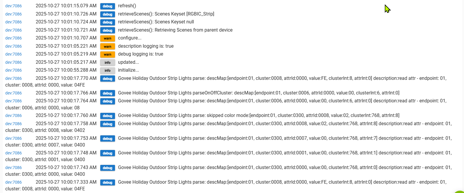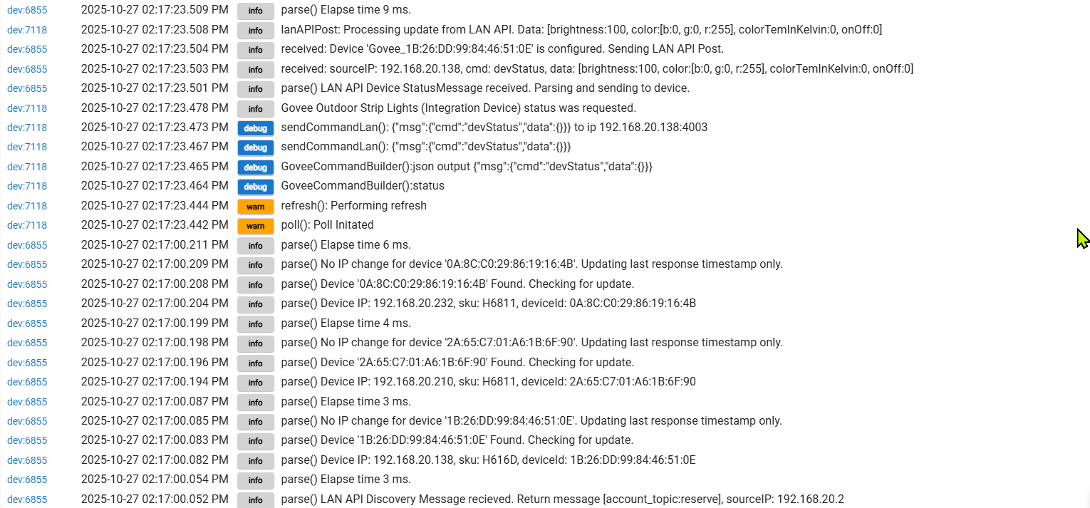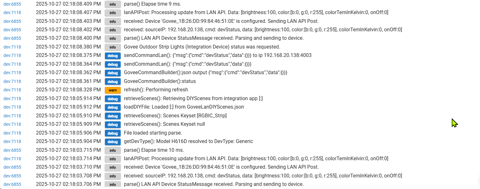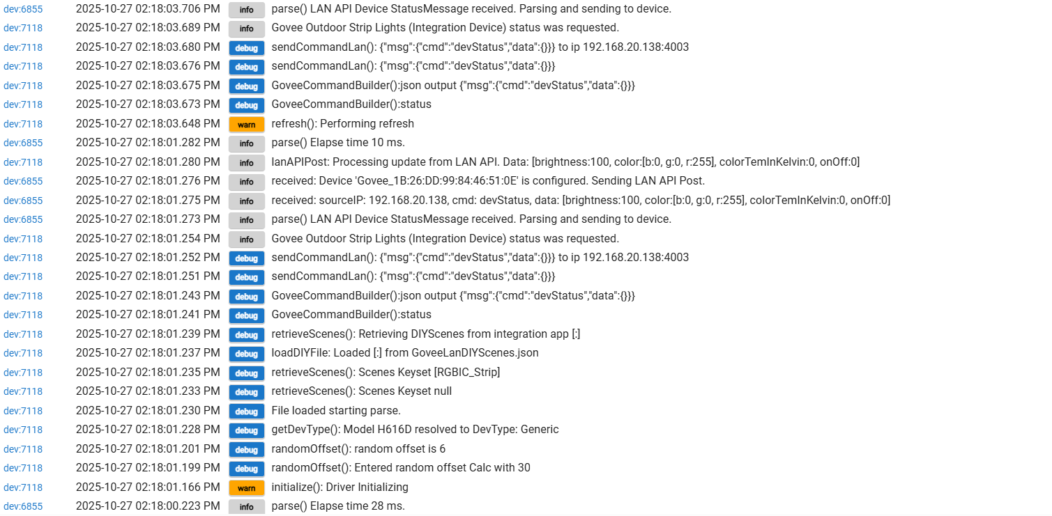 But I may have a "stopper" in that I can't reliably turn the strip on or off from the driver page. The Matter instance of the strip is just not reliable. I do have other Matter devices that work fine, so not sure why Govee isn't reliable, but I think you've reported this as well.