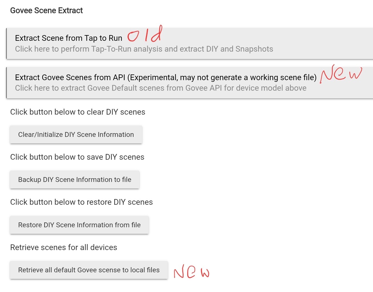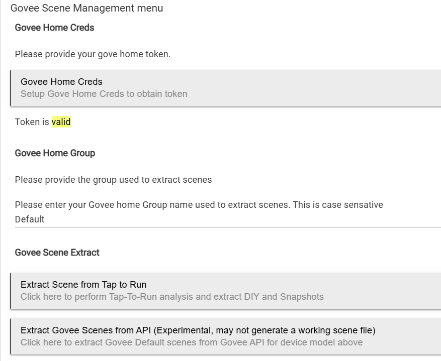 Two things that made me unsure about using the "Extract Gove Scenes from API..." option was that it says "Click here to extract Govee Default scenes from Govee API from Govee API for device model above.