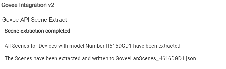I cleaned up the text so it make more sense hopefully. You would need to perform a repair to get the updated code for now. Basically from the Govee Scene Retrieval page you just put in the model and click next. It will go out and call the API and retrieve the list of scenes the device supports and convert it and then create the json file. I tested it with the H616D you have and it did perform the extraction.