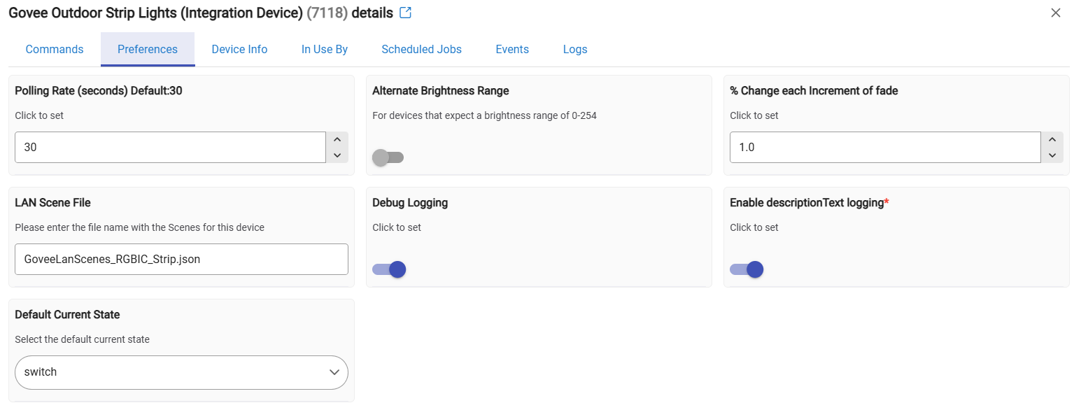 Yes, update the Lan Scene File to be the "GoveeLanScenes_RGBIC_Strip.json" file and save it. Once that is done click on Configure. It should then load the scenes as a state similar to the integration drivers.