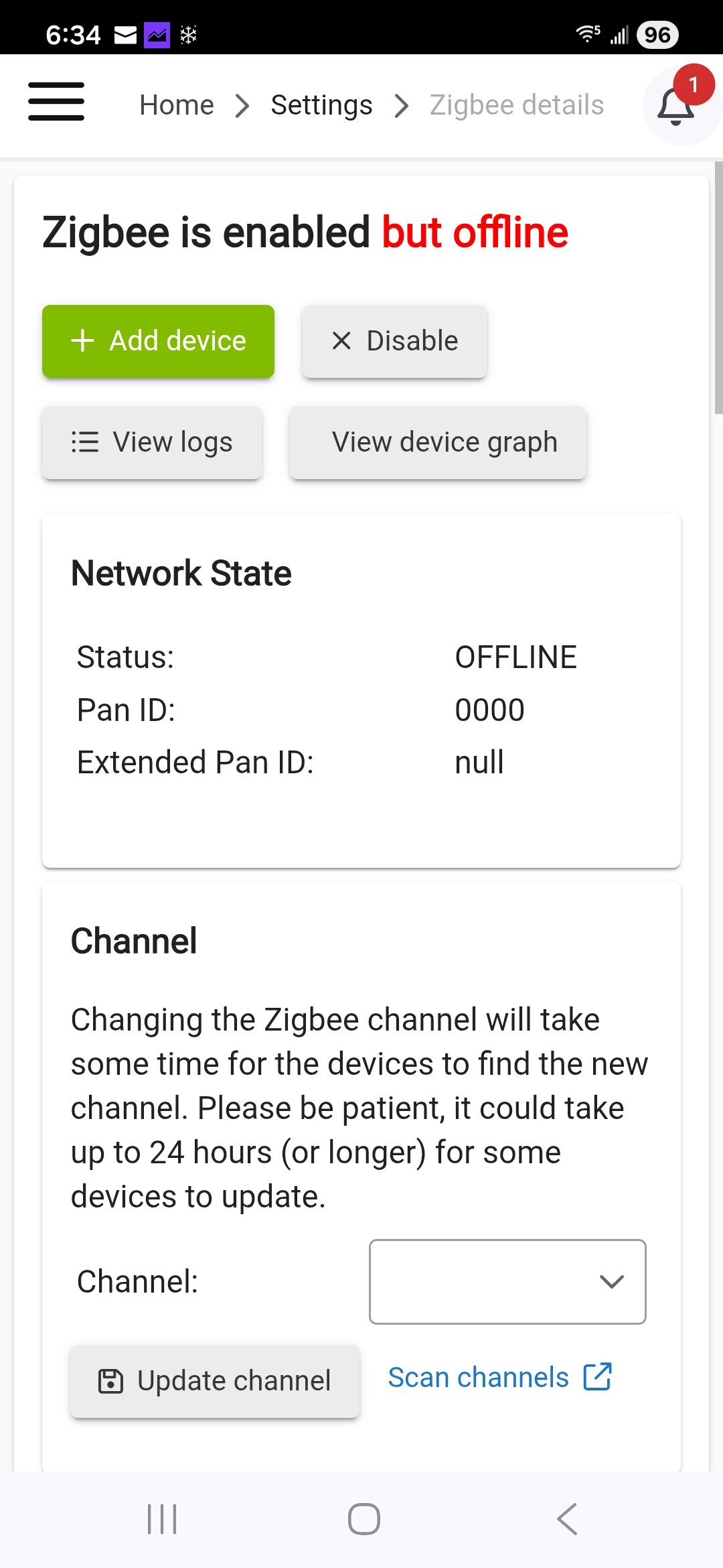 Also, make sure your 2.4GHz WiFi is configured to only use channels 1, 6, and/or 11 with a 20MHz channel width. Once that is sorted, make sure you're using either Zigbee channel 15, 20, or 25 to avoid RF interference with 2.4GHz WiFI.