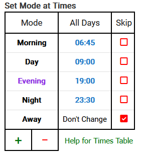 using the thermostat scheduler to set the temperature per mode (Away, Morning, Day, Evening, Night)