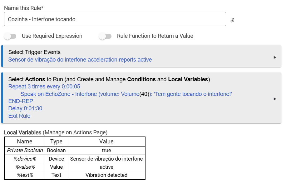 It is working well, except by one detail: it should repeat the message just 3 times and, if the intercom isn't answered, the rule is triggered again 1 minute and 30 seconds after it stopped, but the message is being repeated many more times.