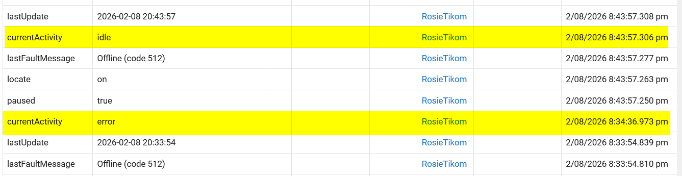 I'm trying to notify myself when a robot vacuum gets an error. The thing i am checking is a custom attribute called currentActivity (which is a String) and I want it to send a notification when it changes to the value error