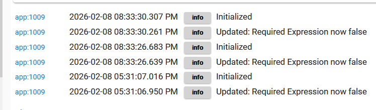 Is this the exact same rule as above? You don't have a required expression there, but the logs say you do -- and also why it isn't triggering.