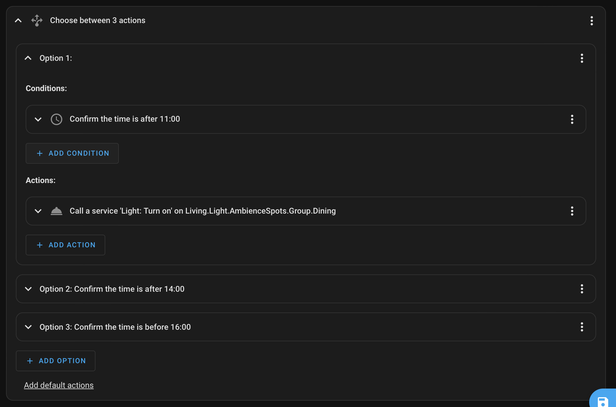 Here is an example of a choose condition. You can add as many choose conditions that you need and why not embedding it in an if-else automation