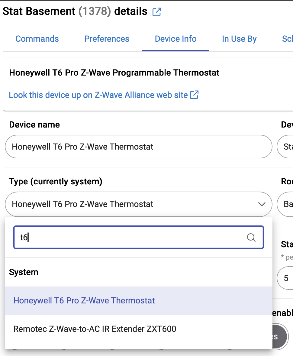 Use the Generic z-wave thermostat driver. That encompasses the t6 pro from @bcopeland. When you change it and click save, make sure you click Configure.
