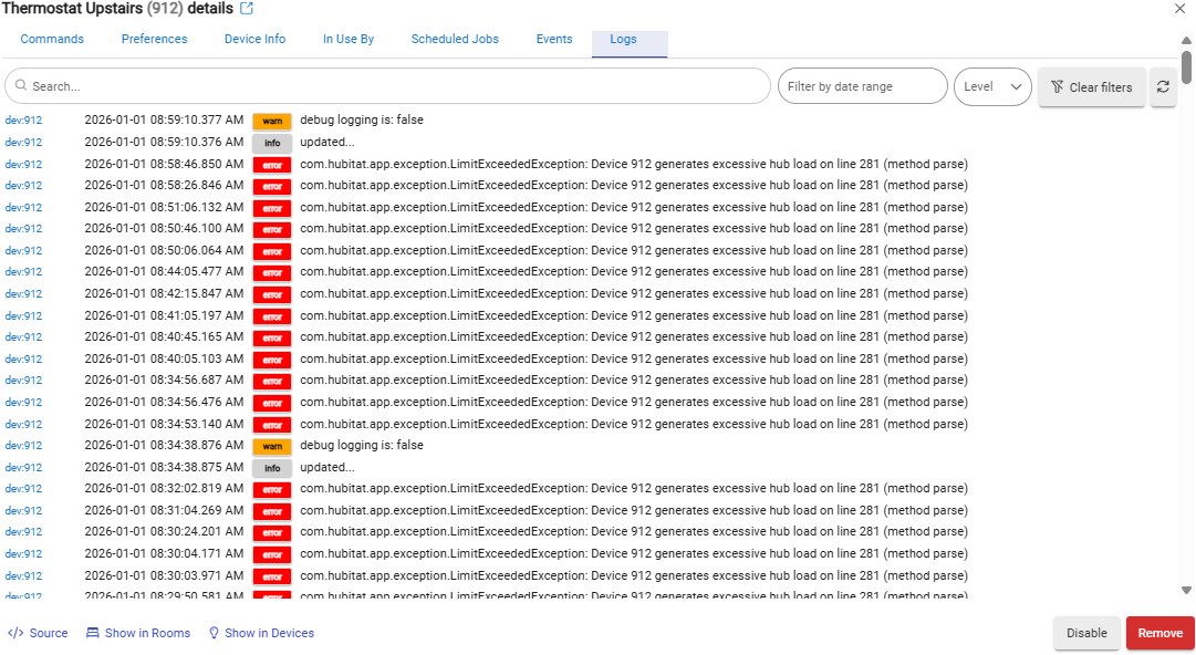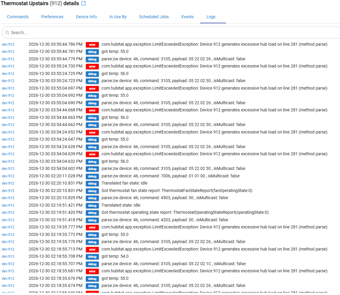 com.hubitat.app.exception.LimitExceededException: Device 912 generates excessive hub load on line 281 (method parse)