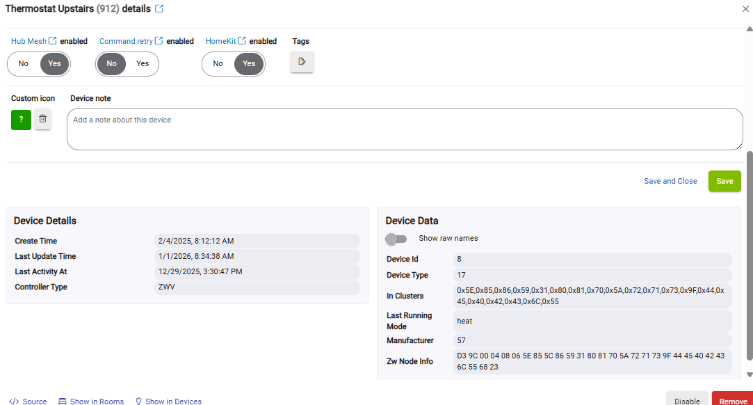 I installed this in Jan '25 and it's been flawless until 12-29-25. At first it stopped coms with hubitat and my dashboards wouldn't control it, I was able to manually operate it. Then suddenly manual operations ceased on the same day and the Tstat was stuck in Cool Mode. So I just started poking around this morning, 1-1-26 and I found in the settings in the Preferences tab-Equipment Type had somehow changed to Oil or something? I set it to Air to Air Heat Pump at 8:34am and the unit switches on and starts heating.... However my dash boards are still not controlling the unit. The Logs are showing the updates and the same error. See attached logs and device info. TIA....