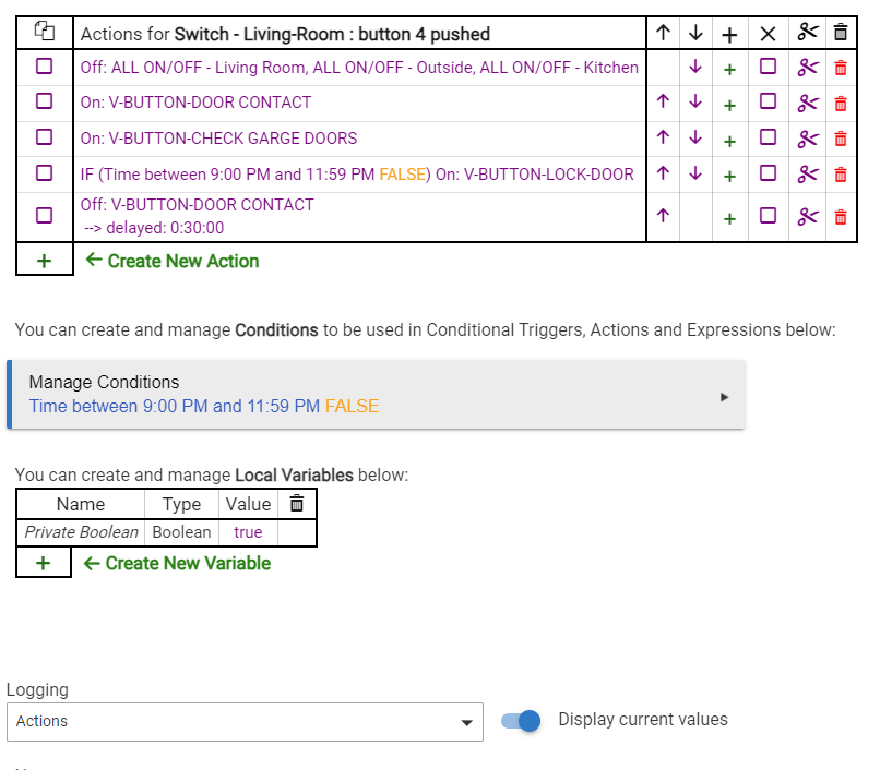 I would add one thing… Your “Off” - delayed by 30 minutes is outside of your if condition, so be aware that after 30 minutes of the rule running, V-Button-Door Contact will always be turned off, regardless of if it was turned on by the rule or not.