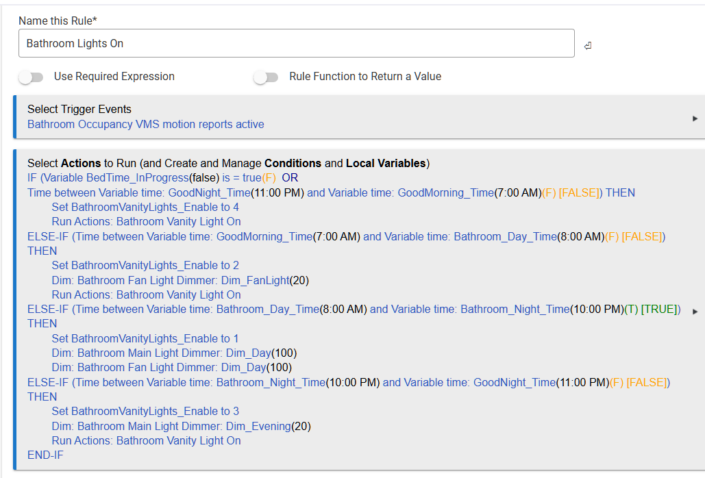 I have a RM Rule which turns on Bathroom Lights: