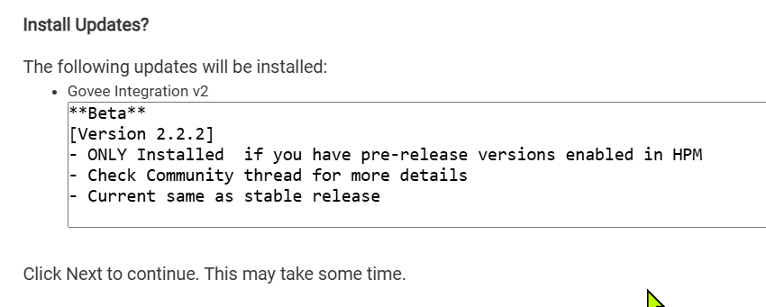 Hey, I have been working a bit with @jtp10181 on to figure how to use the option for beta release recently with my Govee Integration. One of the things that bothered me was the lack of a separate Release notes between Beta and Prod through HPM. It could lead to confusion around what was installed or being installed. I made some changes on my dev hub to get HPM to provide separate release note when doing installs based on if beta is being used or not. Any thoughts on getting this integrated into the broader HPM so we can use this option with our apps?