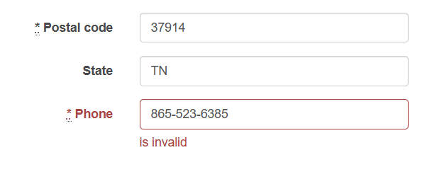 Wow, regardless of what number I use, or remove the hyphens, I just keep getting the "is invalid" message. My actual phone number is 215 area code. But now I live in the Knoxville area so I tried an area code and exchange and still does not work. Any idea what I'm doing wrong?