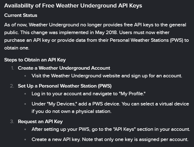 I installed the virtual device then found this out when searching for the API key. I created a Weather Underground account, and when I try to get an API key it stays you must have a personal weather station. Any ideas?