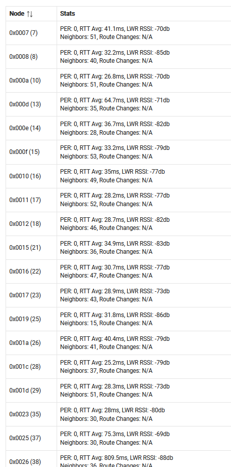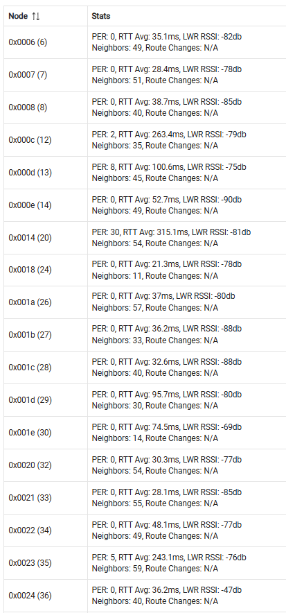 The slower home has EMT conduit for wiring and metal junction boxes wheres the fast house has plastic boxes and romex wiring. The slower house is slightly larger and two story where the faster house is brick and wood and single floor. The RSSI signals on the slower home are about 1-2dB weaker (on average) than the faster home. There are no PER on the faster home but a few nodes with PER on the slower home (see partial listing below). The slower home has some Zooz 800 devices and some older ZWave plus for various vendors. The faster home is mostly newer Zooz 800 devices.
