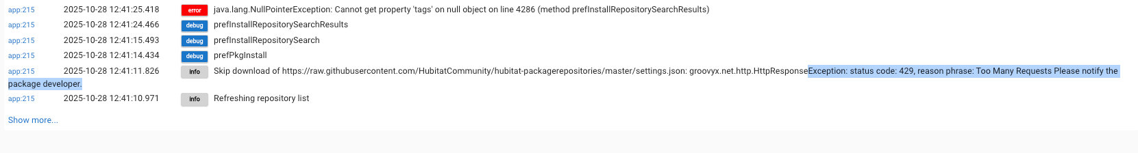 HttpResponseException: status code: 429, reason phrase: Too Many Requests Please notify the package developer.