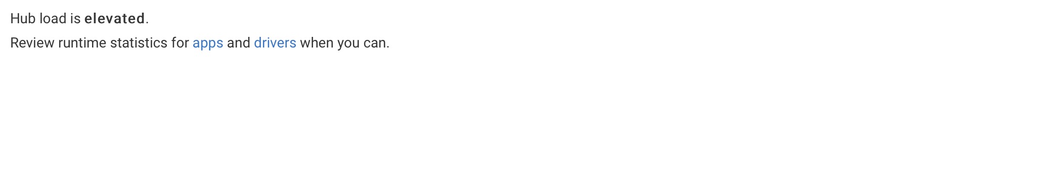 I got this warning. It's a pretty new hub, grand total of 8 apps, 8 rule machine rules, and 66 devices. Should I be concerned? I have had the webpage open basically all day fiddling and setting stuff up, but I did not expect to overload the hub already. Especially since I do plan on adding like.... 12 room lighting automations and 15+ other automations