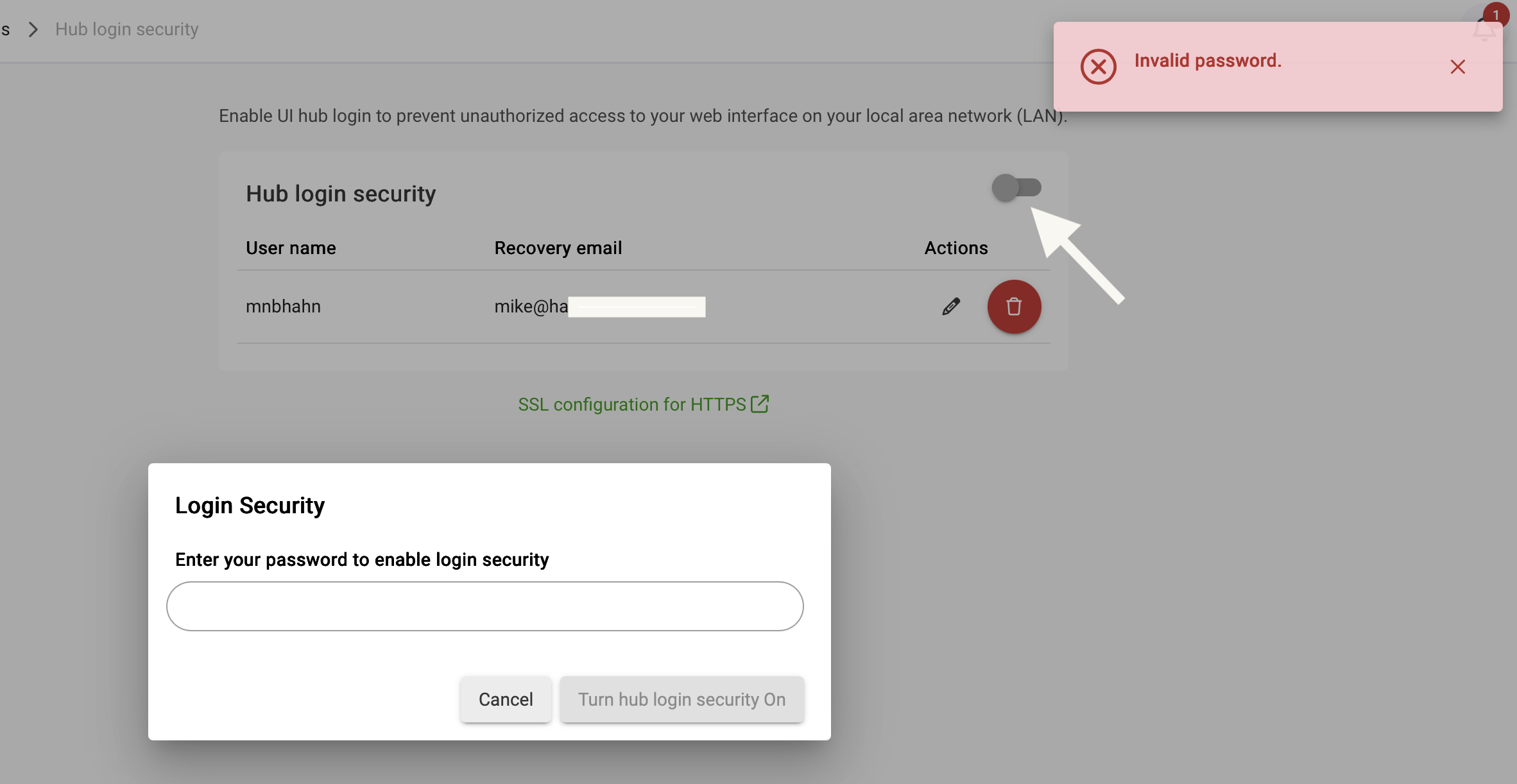 Thanks for the help. I'm not sure if I don't understand the process or something else is going on. My end goal is to turn on Hub Login security. I have a working password that I can logon/off at the my.hubitat.com page. My end goal is to enable Hub Login Security on my local hub, but every time I try to do it, it asks me for my existing password (which I've changed and works). But for some reason, it always says my password is invalid. Here are some screenshots the help show my steps.
